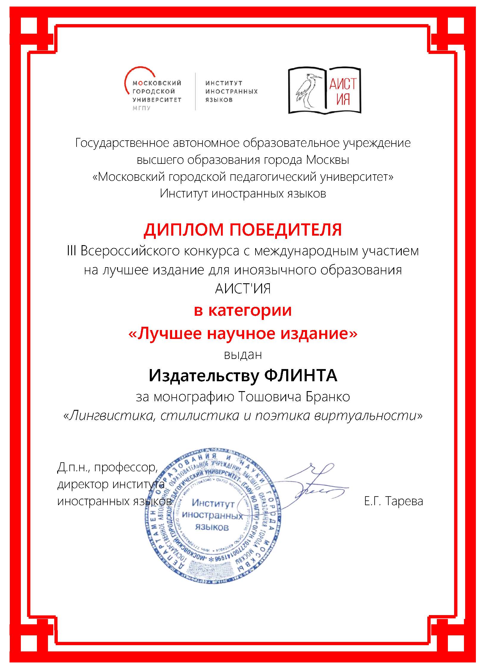 Бранко Тошович Лингвистика, стилистика и поэтика виртуальности Москва: Флинта 2024 517 с. ISBN 978-5-9765-5503-7 Оглавление Диплом победителя ![]() |
